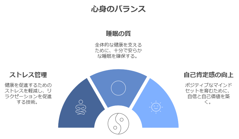 自分自身と向き合い、ストレスをうまくコントロールし、体に優しい習慣を築くことが成功への道です。また、バランスの取れた食事や適度な運動を続けることで、心もリフレッシュしやすくなります。